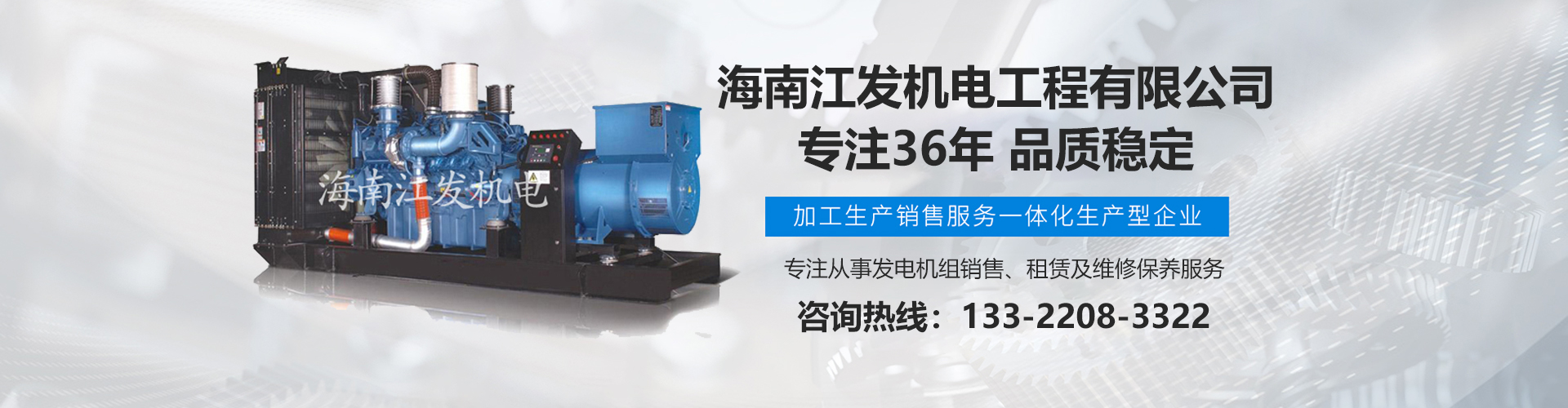 海南江發(fā)機(jī)電工程有限公司是海南經(jīng)營進(jìn)口、國產(chǎn)柴油發(fā)電機(jī)組、是海南較早、較大的銷售、租賃服務(wù)及維修保養(yǎng)專業(yè)機(jī)電公司。從1985年開始,公司勵(lì)精圖治、銳意進(jìn)取、不斷創(chuàng)新,不僅在海南機(jī)電行業(yè)領(lǐng)域中具有先進(jìn)技術(shù)、完美管理、誠信服務(wù),高超的產(chǎn)品質(zhì)量和性能,而且還有合理的產(chǎn)品性能價(jià)格比,令客戶滿意以及完善的支持保障。 在客戶心目中,江發(fā)公司不僅具有最好的企業(yè)信譽(yù),還是客戶最信賴的誠信單位,而且會(huì)帶給客戶永遠(yuǎn)的光明和豐厚回報(bào)。